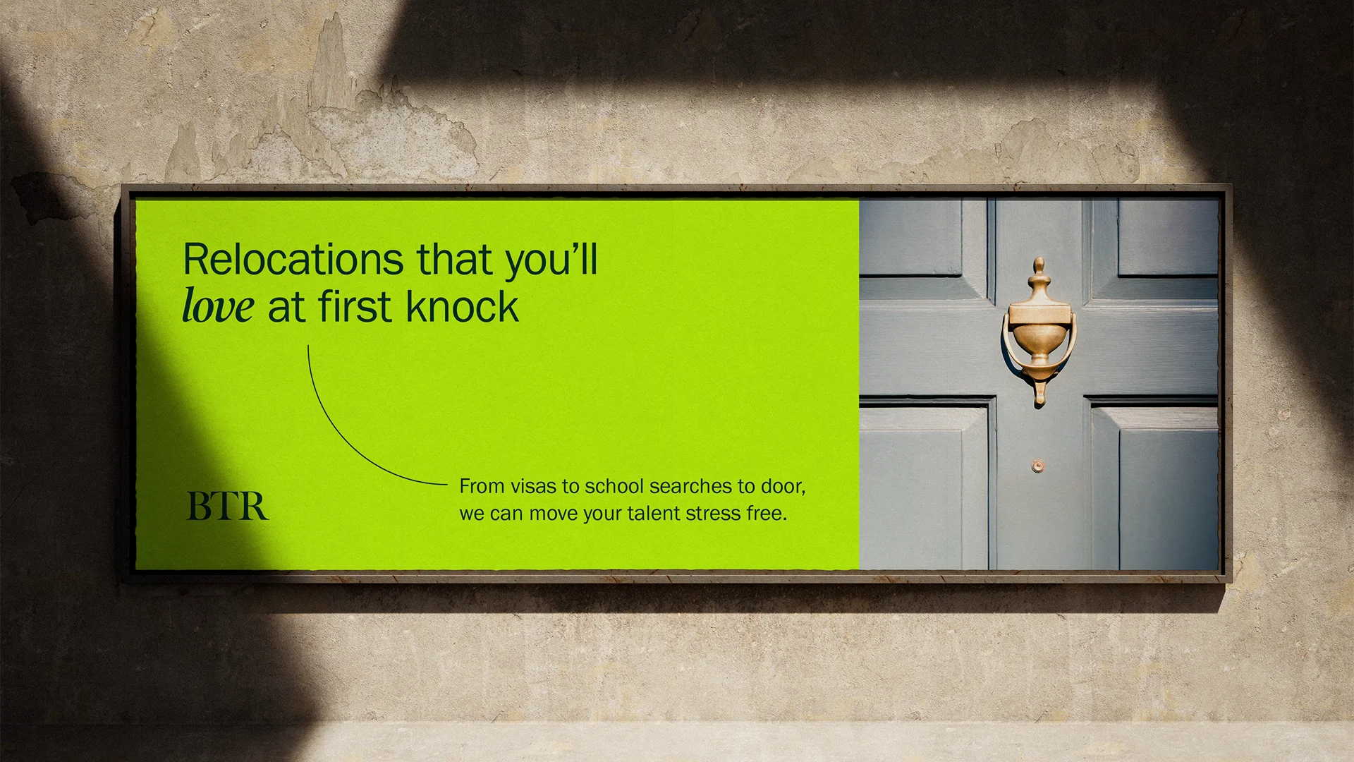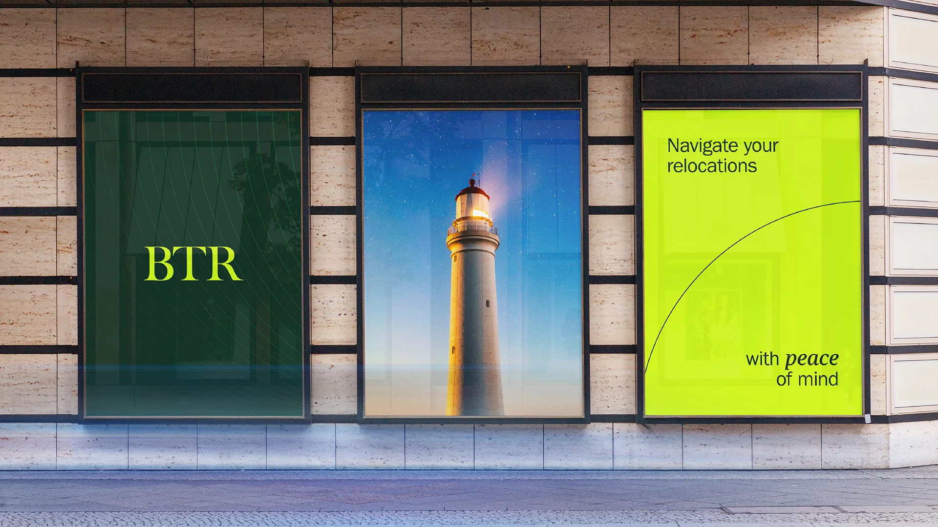 Relocating employees across the globe is no small feat, but BTR makes it feel so effortless. To reflect this, we created the Arc – a clean, clever design element that stands for movement, connection, and ease. Whether it’s linking words with images or bringing structure to layouts, the Arc captures the feeling of a smooth, seamless relocation.